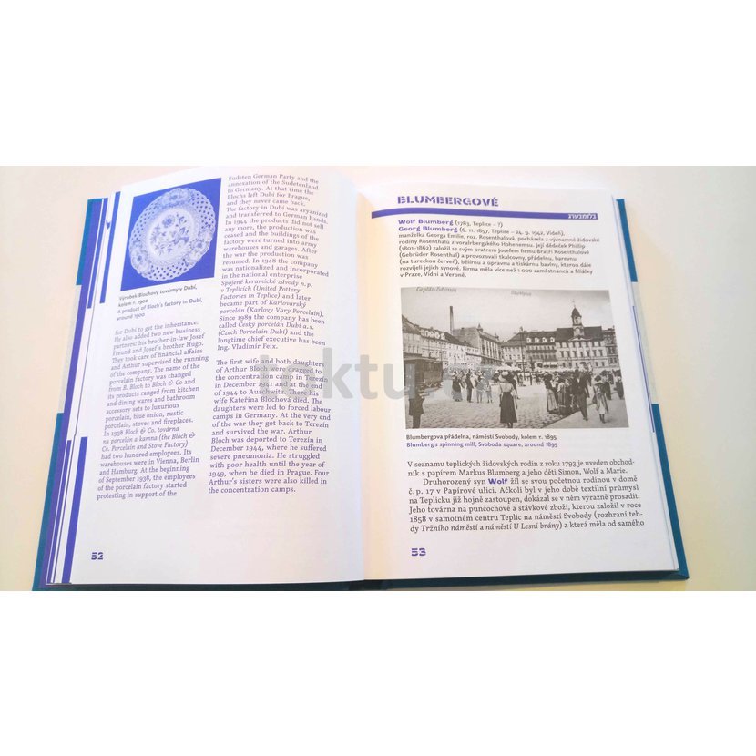 Publikace představuje vybrané židovské osobnosti, které se v Teplicích a blízkém okolí narodily, nebo zde ( ač to nebyli rodáci ) prožily podstatnou část svého života a významně se do dějin města a okolí zapsaly. Kniha je koncipována jako soubor medailonů jednotlivých osob s obrazovou a textovou částí doplněnou anglickou mutací pro reprezentativní účely knihy.